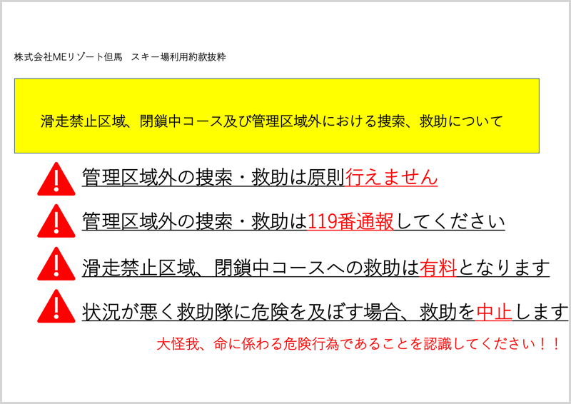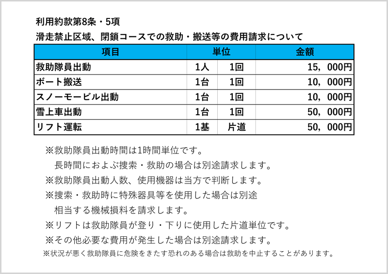 滑走禁止区域、閉鎖コースでの救助・搬送等の費用請求について