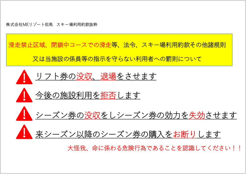 滑走禁止区域、閉鎖コースでの救助・搬送等の費用請求について